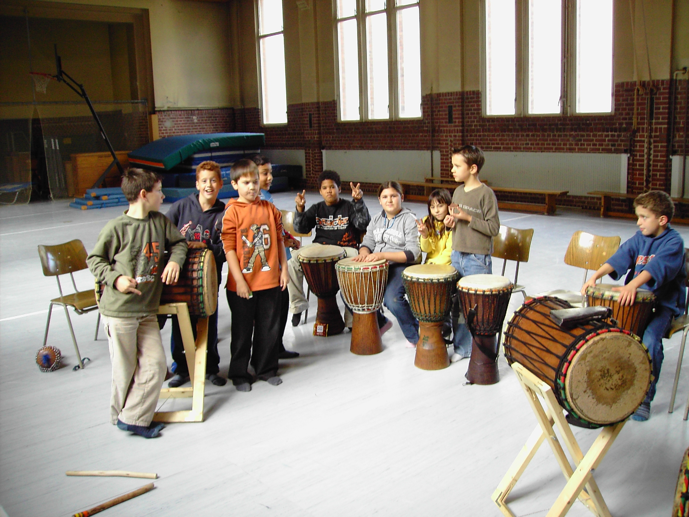 meiner Leitung das westafrikanische Trommeln und die dazugehörigen